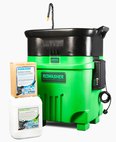 Er genügt den meisten Anwendungen und bietet alles, was man bei einem manuellen Teilereiniger braucht – ein einfach zu bedienender Ein/Aus-Schalter, ein Timer für Durchflussregelung und eine Hochleistungspumpe. Eine flexible Düse mit gut sichtbarer orangefarbener Spitze zur Steuerung des Flüssigkeitsstroms sorgt für eine leistungsstarke einstellbare Durchflussrate. Seine selbstreinigende Bürste ist das ideale Werkzeug, um hartnäckigen Schmutz zu lösen. Ein 200-Mikron-Korbfilter in der Spüle fängt größere Partikel ab. Der ROwasher hat eine eingebaute Sicherheitsfunktion für die automatische Abschaltung von Pumpe und Heizung bei Erreichen der Mindestfüllmenge. Das Gehäuse des ROwashers ist doppelwandig und sehr robust ausgeführt: es bietet eine hohe Belastbarkeit und größtmögliche Wärmeisolierung. Die Kontrolleinheit inklusive aller Komponenten (Heizung, Pumpe , Kombisensor) kann als 1 Element schnell gewechselt werden.